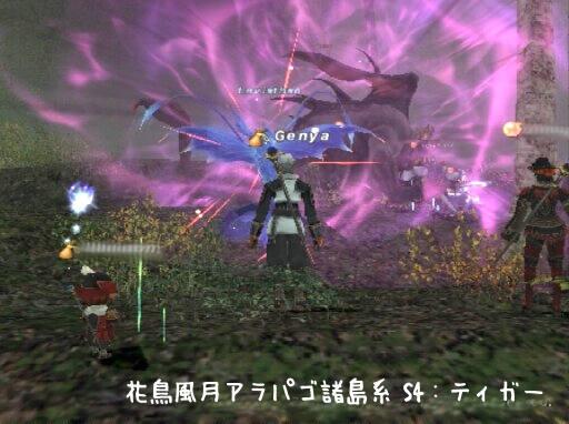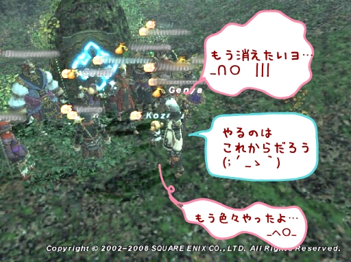 レベル上げで絡まれたら生き返れるとこでヒトリでシヌってのがセオリーなんですが、今回は人数も多く、絡まれたらやろうっていう話だったのでその場で戦闘に。