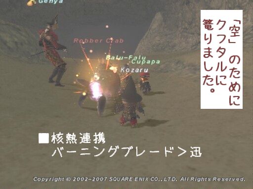 ここで、そうだ青2でも!と思ってサーチするとなんと裏LSで一緒の青猫Nさんがっ!!今までにも数回組んでもらってるのですが、Nさんなら後衛系青を頼んでも安心なのです。早速テルをして入ってもらいました。